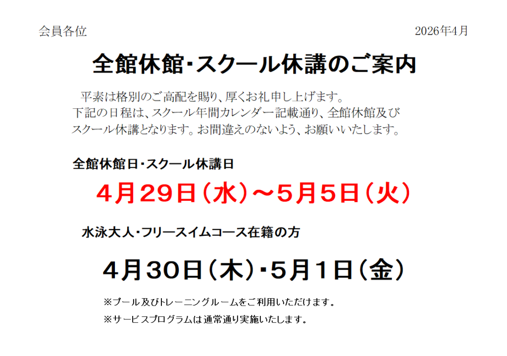全館休館のご案内